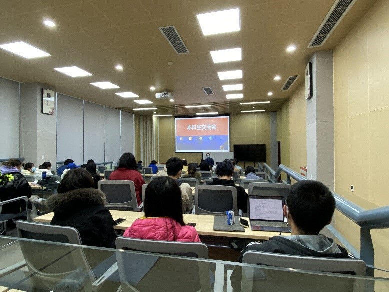 在本次见面会上,褚良银教授首先提醒同学们入冬了注意保暖,活跃了现场氛围。随后,由2018级化学工程与工艺的同学给2019级同学带来保研、考研、出国、找工作等方面的经验分享,强调了学习成绩的重要性,同时还提醒2019级同学要注意合理安排学科竞赛和学习的时间,尽早明确深造意向。在分享结束后,2019级同学踊跃提问,比如如何联系导师、如何选择科研方向等问题。褚良银教授和2018级同学分别作了相应回答,提醒大家要多留意学院官网、多和学长学姐以及老师沟通。褚良银教授指出,大家的选择要结合自身发展经历,不能盲从,并鼓励大家要充分利用大学期间短暂而美好时光,加强自主学习,不负韶华,勇敢追梦!