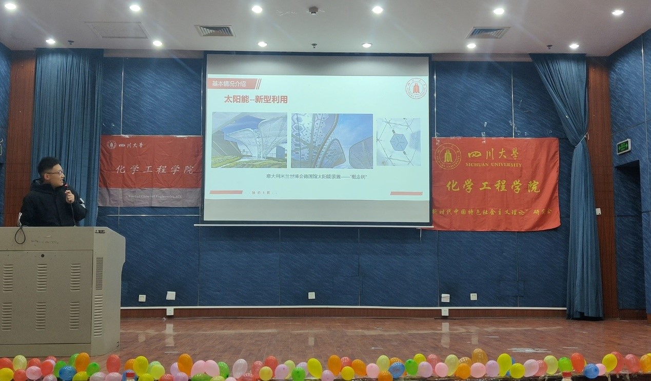2021年12月4日下午15:00,“辉煌化工,畅想未来”专业风采展示大赛决赛在四川大学江安校区第二实验楼B座报告厅隆重举行。今年是中国共产党一百周年华诞,本次活动以“百年征程,初心如磐”为主题,一方面丰富了同学们的课余生活,展现了化学工程学院2021级新生们的青春风采与对化工的深切热爱;另一方面,增强了同学们的学术调研和演讲能力,促进了学院师生间的相互交流,点燃了同学们对化工的饱满热情。