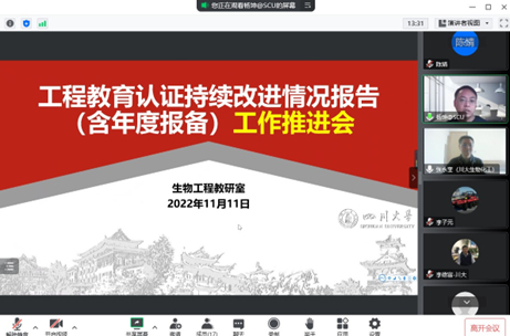 2022年11月11日下午2:30,受突发疫情状况的影响,原定线下举行的生物工程教研室教研活动改为线上举行,生物工程教研室全体教师参加了会议,制药与生物工程系主任巨晓洁、教学副主任李子元、制药工程学科带头人李延芳及制药工程教研室主任孙巧媚列席了会议。