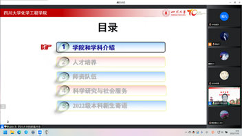 为使2022级新生深入了解本专业,把握学科方向,增强学科认同,尽快适应专业学习,11月16日上午8点,四川大学化学工程学院于线上腾讯会议举行了主题为“担时代重任,树化工新人”的讲座。本次讲座由化学工程学院主办,化工团委学生会学术科技部承办,化学工程学院院长赵长生教授作为特邀嘉宾出席讲座,广大化学工程学院同学参与本次讲座,取得了良好的效果。
