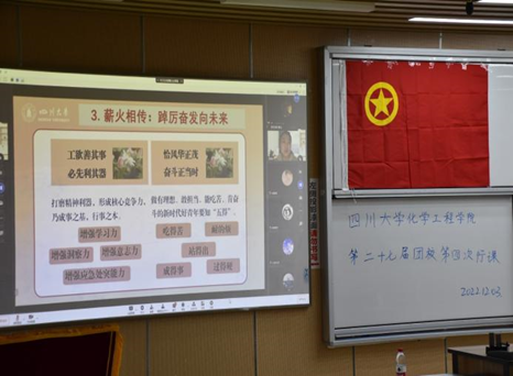 2022年12月3日上午9时及下午14时,四川大学化学工程学院第二十七届团校第四次行课于四川大学江安校区综合楼C座206设线下课堂顺利进行,并通过线上腾讯会议同步转播。四川大学化学工程学院分团委书记李珍珍老师参加此次授课。