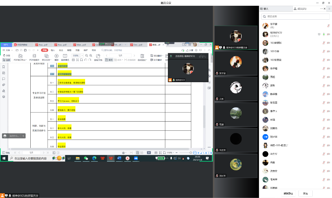 杨坤老师向大家介绍了学生指导档案的中“立德树人及全过程思政”,“学生专长发展及成长规划”,“专业学习计划及修读进程”,“科研、创新与实践活动参与”和“思想动向、心理建设与生活问题”五个方面涵盖的内容,并结合往届同学的规划经验进行了举例说明,从而端正了大家对于规划自己成长目标和成长路径的态度,同时也拓宽了大家的思路。杨坤老师介绍往届的学长学姐们在大一时,也跟大家一样对未来充满憧憬,但是缺乏具体的规划,通过填写《学生指导档案》去进一步的深入思考和仔细筹划,最终取得突出的成绩。同学们也纷纷表示自己也十分需要这样的规划,为自己的未来好好作打算!