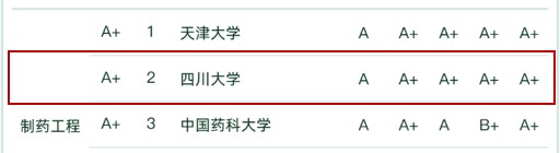 其中,化学工程与工艺专业位列全国第5,获评A+级;过程装备与控制工程位列全国第8,获评A级;制药工程专业位列全国第2,获评A+级;生物工程专业位列全国第8,获评A级。