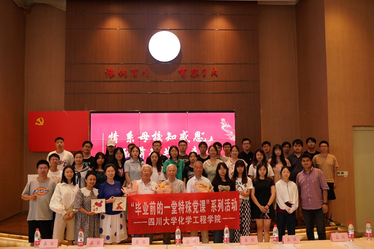 为深入学习贯彻落实党的二十大精神,进一步创新毕业生党员教育形式,强化毕业生党员责任意识与使命担当,丰富拓展“毕业前的一堂特殊党课”党建品牌内涵,6月19日在四川大学江安校区22舍报告厅,化学工程学院学生工作组组织开展“情系母校知感恩,砥砺前行共未来”主题党日活动。本次主题党日活动,由化学工程学院本科社区党支部毕业生党员张雪主持,有来自于学校大学工系统、体育学院、图书馆、保卫处、校医院、食堂、宿舍、校园物业、菜鸟驿站等部门的老师代表,有四川大学关心下一代工作委员会3位老教师党员,此外,还有化学工程学院学工组5位老师以及40位学院毕业生党员代表共同参加。