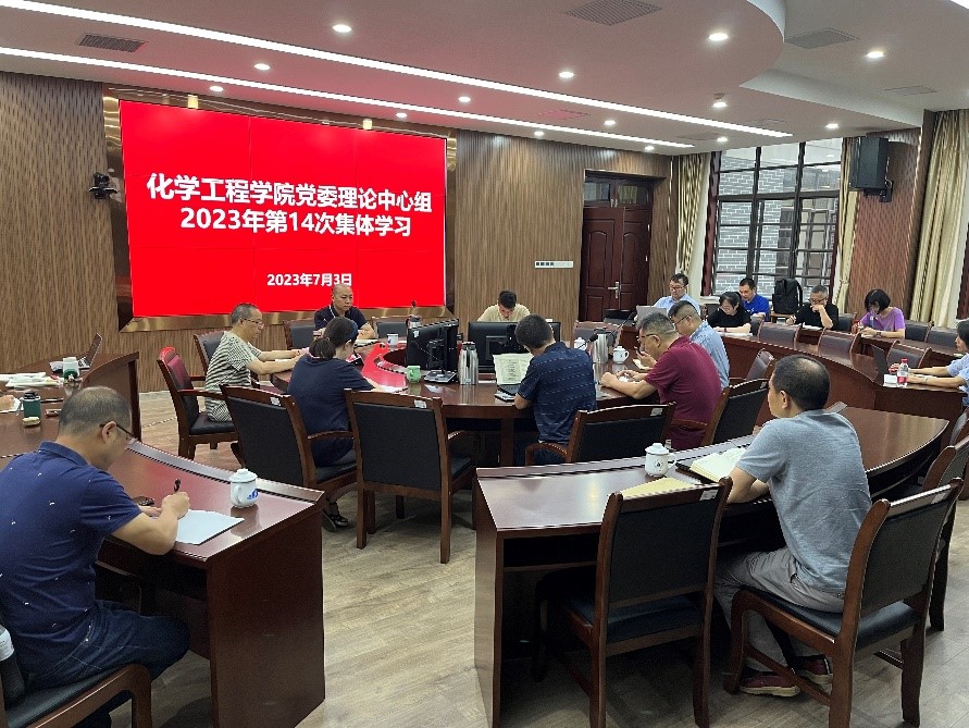 2023年7月3日上午,化学工程学院党委理论学习中心组在望江校区化工学院312会议室开展集中学习,及时跟进学习习近平总书记最新重要讲话精神。学院全体领导班子成员、党委委员、工会主席、专职组织员、系(基地、中心)主任、院长助理和科级干部等参加会议。会议由学院党委书记李天友主持。