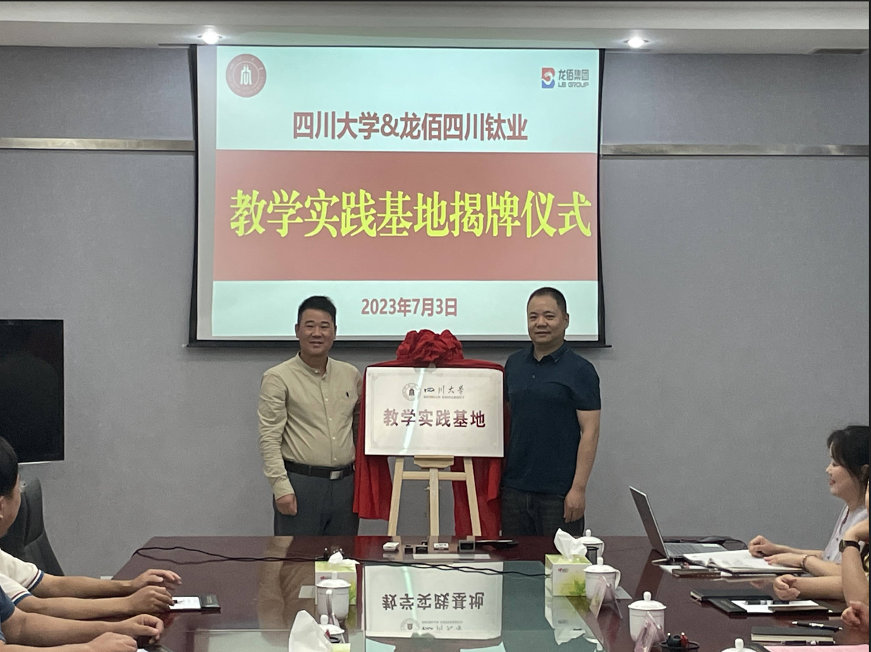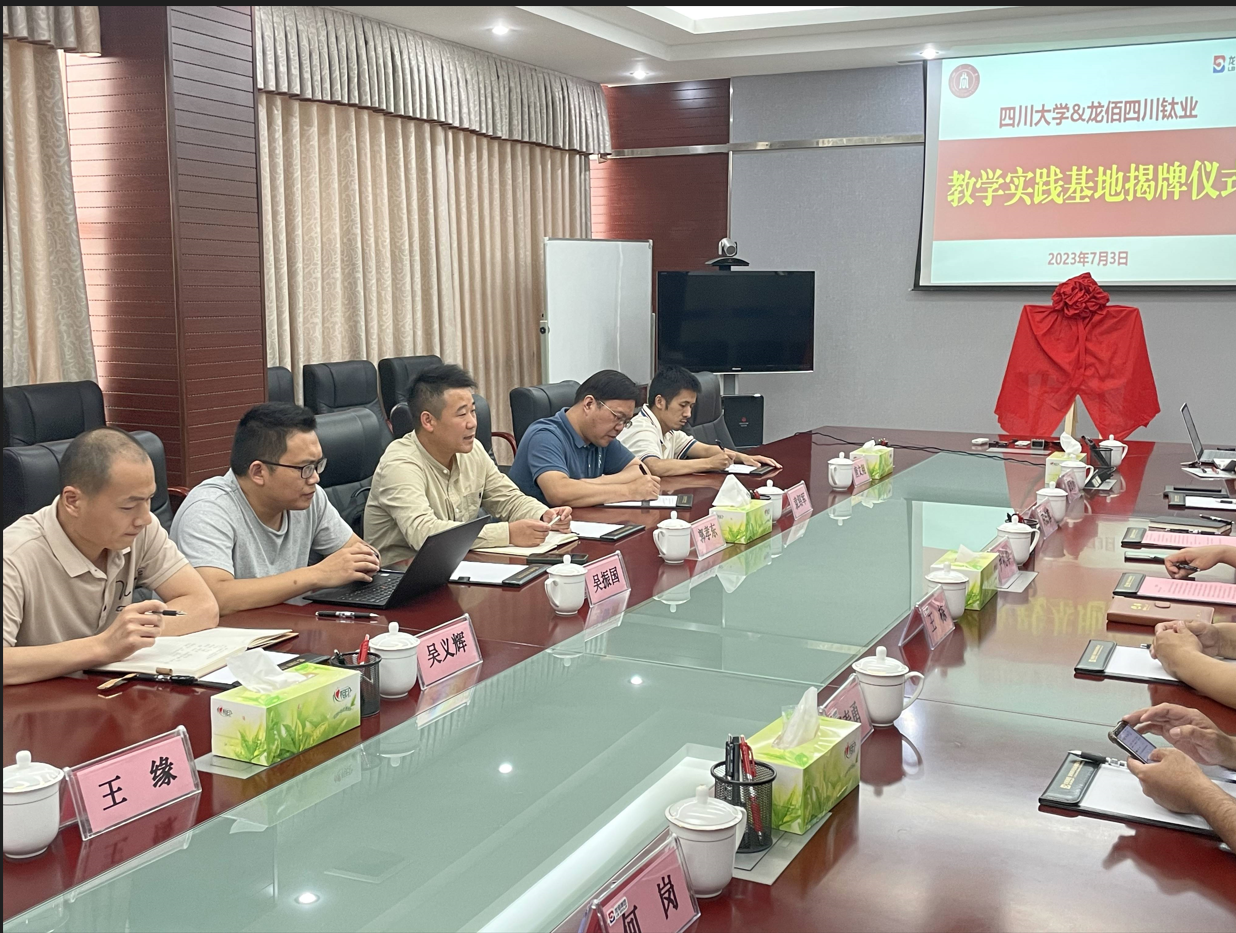2023年7月3日,为深入推进校企合作、促进四川大学化学工程学院学生提升工程实践能力,在学院李天友书记、李德富书记等前期协调组织下,我院院长郭孝东、化工系主任袁绍军、实训教研室主任吴振国以及教研室老师唐文翔、吴义辉、王缘一行赴四川德阳绵竹新市,与当地优秀企业龙佰四川钛业和川发龙蟒举行“教学实践基地” 揭牌仪式。