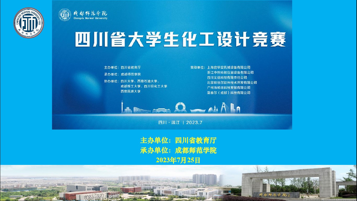 7月22-25日,由四川省教育厅主办的2023年四川省大学生化工设计竞赛在成都师范学院温江校区隆重举行。来自全省20余所高校、180余所团队、500余名学生报名参加本次比赛,经过初筛的15所高校45支队伍、40余名评委和270余名学生参加了决赛。我校腈腈耶耶耶、满腹腈纶等六支团队参加了竞赛。