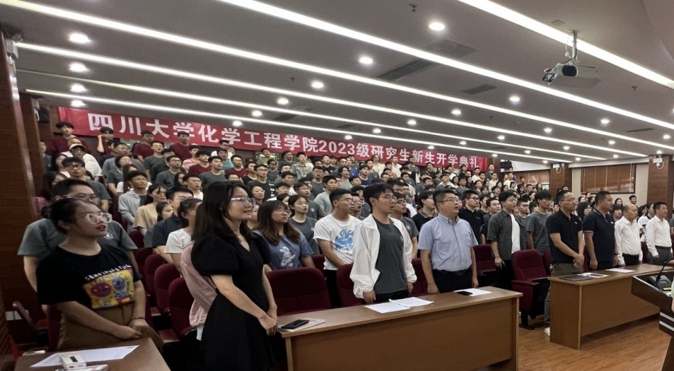 2023年9月14日下午14:30,四川大学化学工程学院2023级研究生开学典礼于望江校区化工学院楼313会议室正式举行。本次活动对2023级新生而言,是全面了解学院各板块运营、深刻领悟学院精神、摆正自己研究生身份、知道“何可为,何不可为”的重要机会。会议由四川大学化学工程学院党委副书记姜利寒主持,四川大学化学工程学院杰出教授钟本和、党委书记李天友、院长郭孝东、党委副书记李德富、副院长钮大文、化学工程系主任袁绍军、过程装备与安全工程系主任伍勇、国家工科基础课程化学教学基地主任朱权、工程实验教学中心主任蒋炜、制药与生物工程系副主任刘文彬,校友代表玉龙化工总工程师叶锐,化学工程学院教师李万舜、毛静、张光菊、杨秀英、邓磊以及2023级全体新生到场参加本次会议。