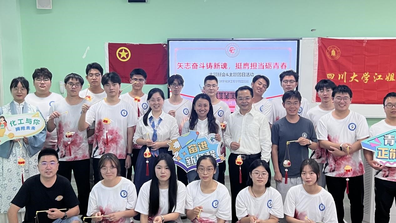 为全面贯彻党的二十大精神,落实团十九大部署,加强青年思想政治引领,引导广大青年坚定听党话、跟党走的政治信念。9月24日下午14:30,化学工程学院江姐班全体同学于江安校区综合楼B304开展了以“矢志奋斗铸新魂,挺膺担当砺青春”为主题的班会及主题团日活动。出席本次活动的嘉宾有:四川大学副校长、江姐班班主任褚良银老师,谢锐老师、李珍珍老师、付率老师。本次主题团日活动由江姐班学习委员梅哲威主持。