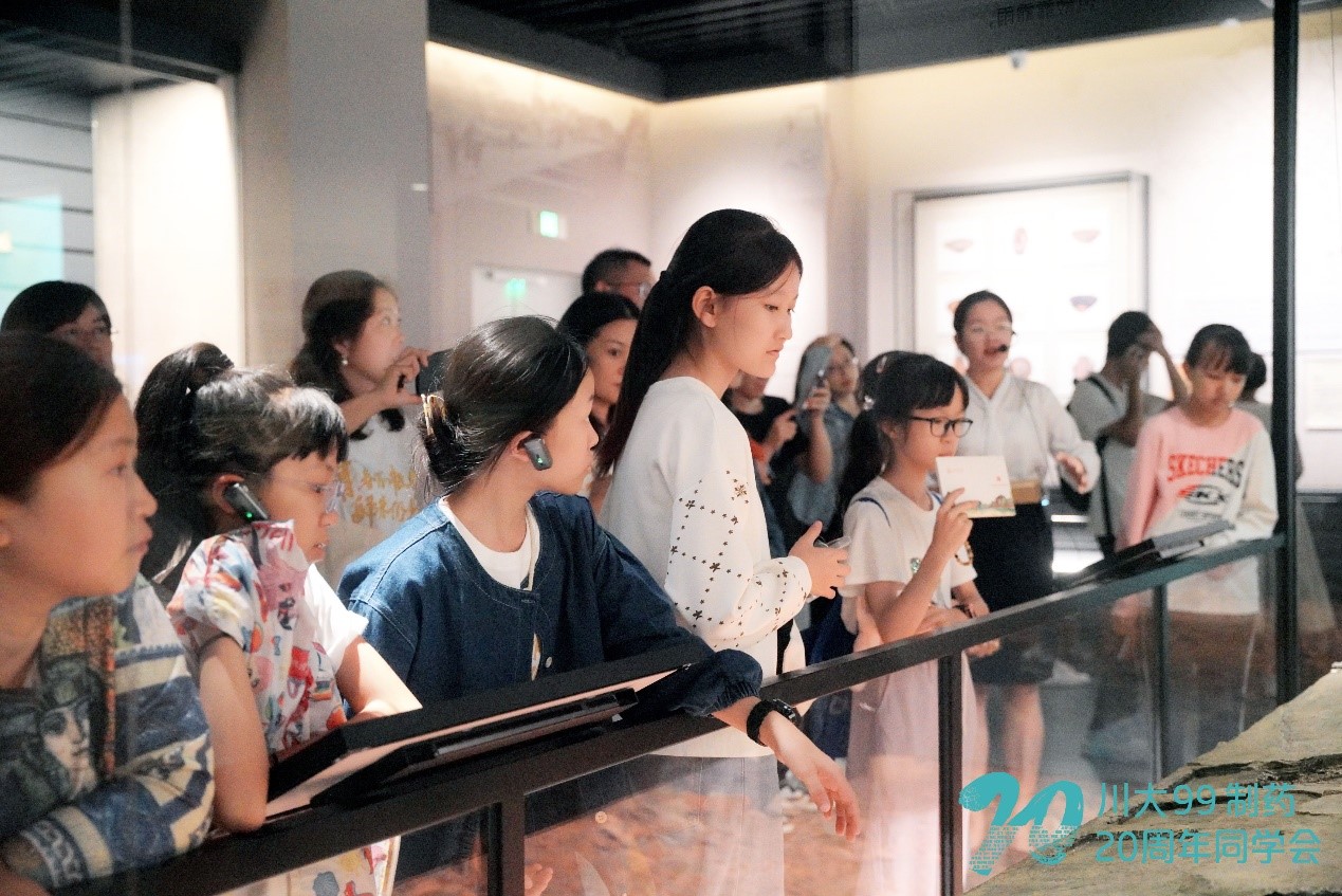 午餐后按照之前的日程安排,大家一起乘坐校内穿梭小巴前往川大校史馆和博物馆参观。置身于珍贵的文物和史料之间,同学们再次深刻地感受到了母校丰厚的历史底蕴,而透过博物馆崭新的设计,通过讲解员细致的解说,大家也了解到了母校的快速发展和众多校友的杰出贡献与成就。