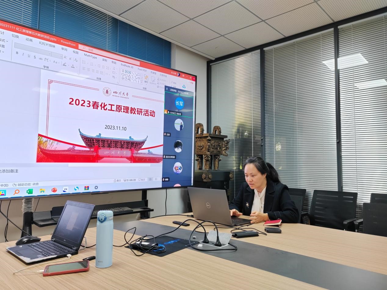 2023年11月10日,化学工程学院化工原理教研室在江安校区第一基础实验楼218会议室开展了教研活动。本次教研室活动由阮丽萍老师主持,教研室教师通过线上、线下结合的形式参与了本次活动。