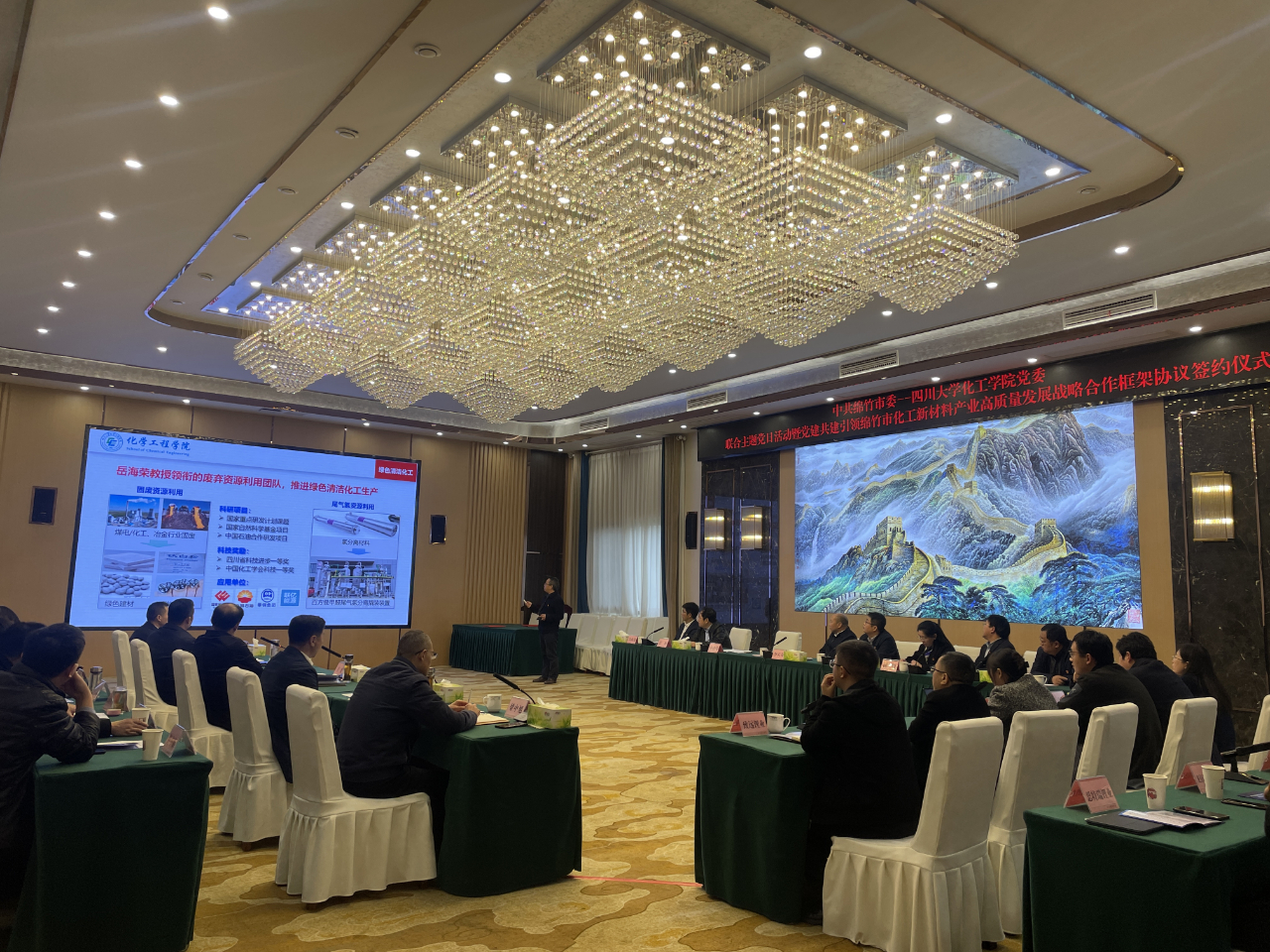 下午,四川大学化工学院党委与中共绵竹市委签订战略合作协议,并就化工新材料产业深度合作进行座谈。