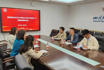 2023年11月24日上午9:00,大连工业大学轻工与化学工程学院党委副书记丁立佳、辅导员郭双桥、翟星然莅临我院开展学生工作经验调研交流。四川大学化学工程学院党委副书记姜利寒、团委副书记李珍珍、研究生辅导员杨秀英对丁立佳书记一行表示热烈的欢迎。本次调研交流活动于四川大学望江校区化学工程学院楼235会议室进行。