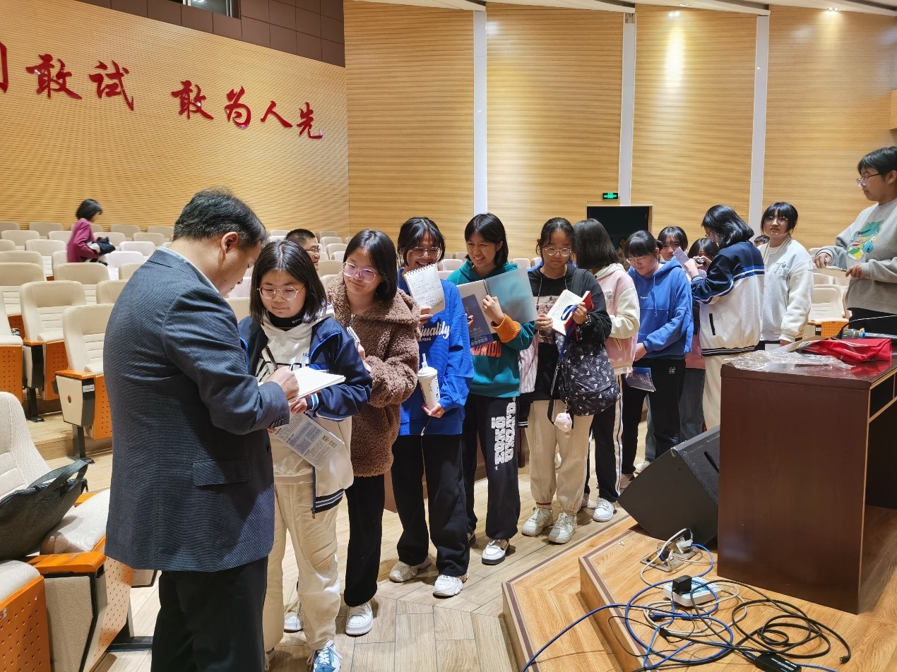 随后,玉溪一中93级杰出校友、华西医学院副院长郭应强教授为同学们做了一场别开生面的报告。郭应强教授回忆了他在玉溪一中生活、学习的美好时光,分享了他励志学医、后考入四川大学临床医学院求学、一路奋斗、留校工作并成为国家级重要人才的成功经历。他鼓励同学们一定要始终保持对未知事物的好奇,自信乐观、不畏困难、勇于创新。在场同学们都深受鼓舞、倍感振奋,在讲座结束后排起了长长的队伍,请郭教授签名。郭教授认真的为每一位学弟学妹写下了鼓励、祝福的话语,签下了自己的名字。