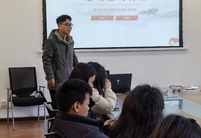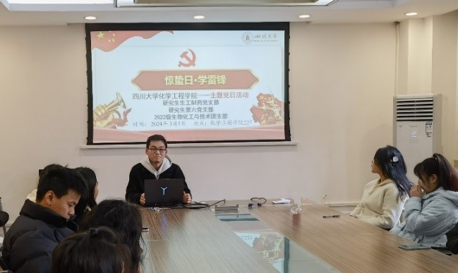 2024年3月5日下午14:00,化学工程学院研究生生工制药党支部、研究生第六党支部与2022级生物化工与技术团支部联合开展“惊蛰日·学雷锋”主题党日活动。本次活动于望江校区化学工程学院227会议室举行,研究生生工制药党支部张浩宇同志主持,研究生生工制药党支部、研究生第六党支部、2022级生物化工与技术团支部全体成员均积极参加到本次活动中来。