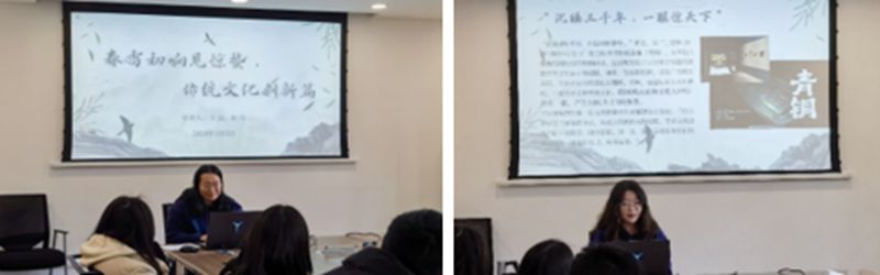 “青马工程”弘毅班学员王喆(左)、张雪(右)做惊蛰与传统文化主题宣讲