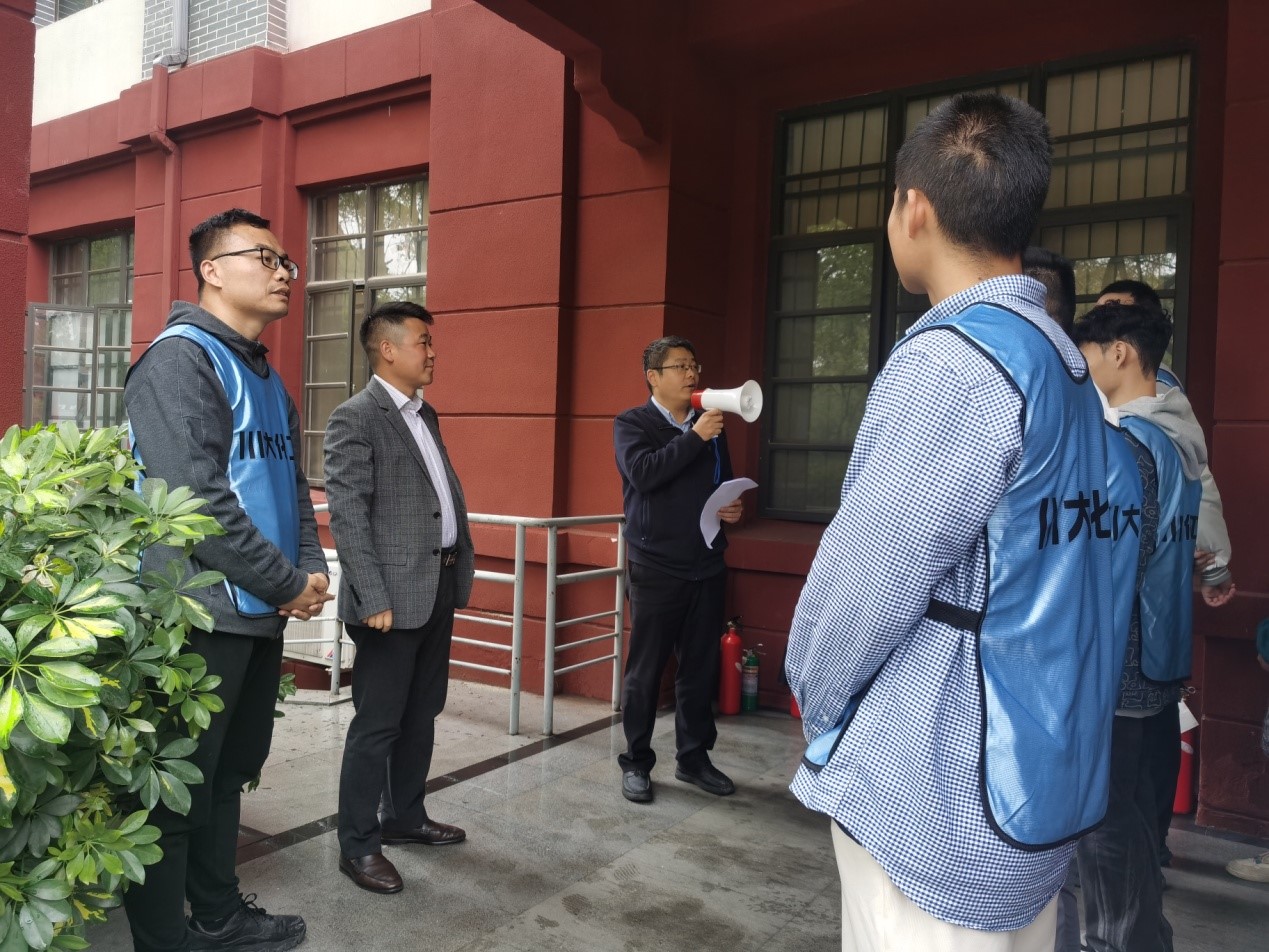 演练开始前,郭孝东介绍了化学工程学院实验室安全概况,并讲述了疏散逃生演练的重要性。学院安全专家组王袁隆老师对参演师生进行了报警、灭火、疏散、逃生、救援等培训,并就消防逃生疏散演练做了详细讲解。