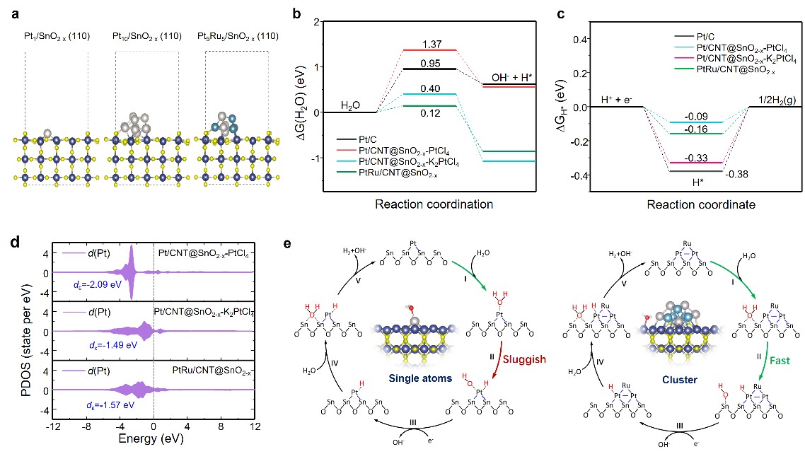 图3 DFT计算分析和碱性析氢反应机理