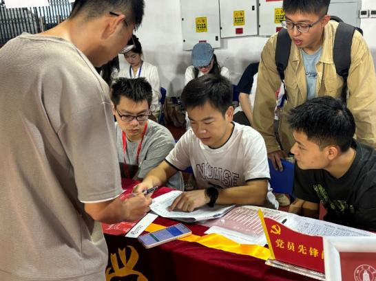 迎新现场,志愿者们早早就位,热情地协助新生完成报到。今年的报到工作采用高效便捷的“一站式”服务模式,将证件交验、校园卡领取、报道信息确认等环节依序完成。为给新生们打造仪式感满满的报到日,报到现场特别设置了互动拍照区,吸引了许多新生驻足留影。学院还为新生们精心准备了迎新大礼包,包含精美的定制帆布袋、纪念胸针、四川大学校史简本、新生文化衫以及生活指南。每一份礼物都饱含着学院对新生的热烈欢迎和暖心关怀。此外,设置了党员先锋岗,党员学长夏有强、张涛先也在现场为新生提供关于学校概况、专业设置、校园生活等方面的咨询服务,发挥了党员的引领示范作用,弘扬志愿服务精神。