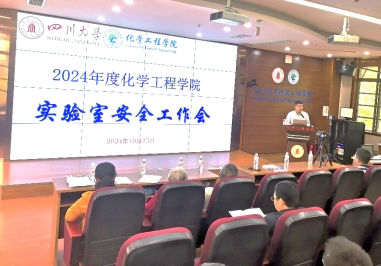 为进一步加强实验室安全管理,10月25日下午学院在望江西二教313报告厅组织召开了“2024年度化学工程学院实验室安全工作会”。会议由学院党委书记李天友主持,全体教学科研岗、教辅岗及安全消防管理近200名教职工参加会议。