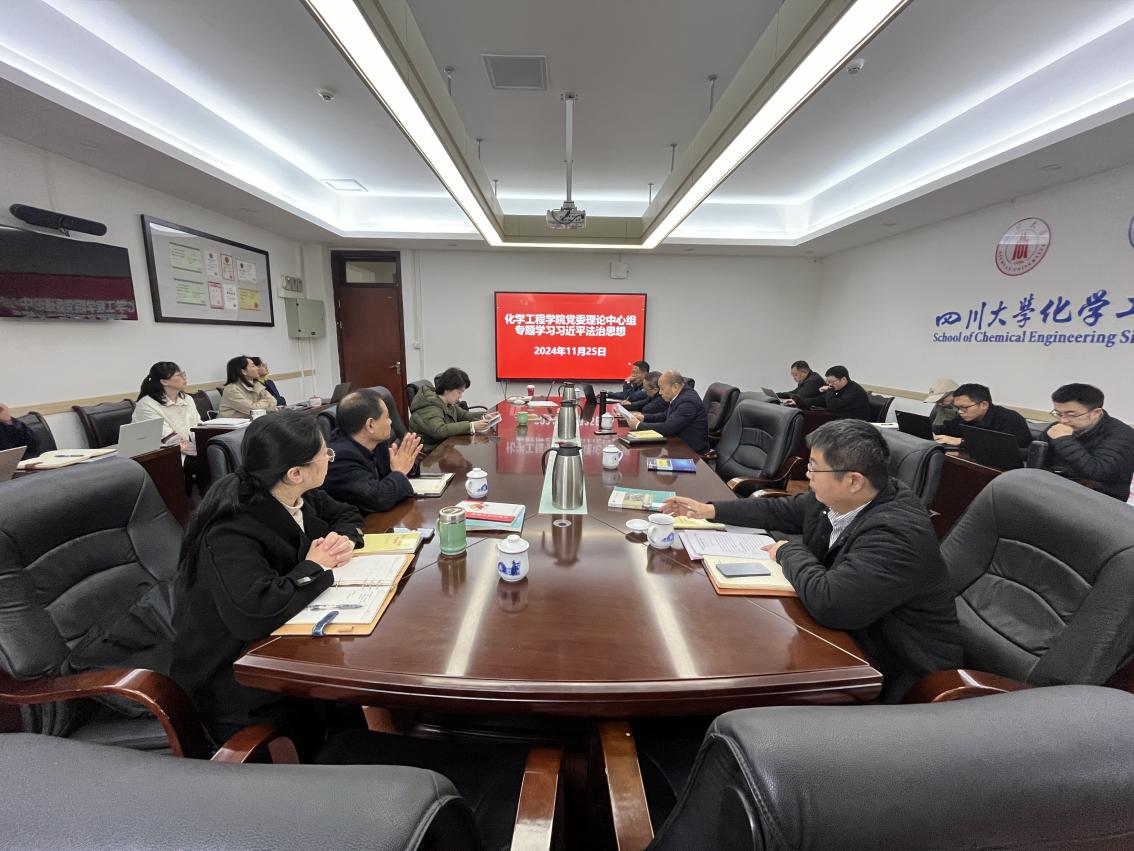 11月25日,化学工程学院党委理论学习中心组组织开展集体学习,专题学习“习近平法治思想”,并跟进学习习近平总书记最新重要讲话精神。学院领导班子成员、党委委员、工会主席、专职组织员、教工支部书记、系主任、院长助理和各科室负责人等参加学习。党委书记李天友主持学习会。
