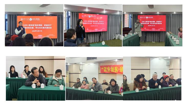为认真贯彻落实党的二十届三中全会精神和全国教育大会精神,进一步巩固学习贯彻习近平新时代中国特色社会主义思想主题教育成果,发挥党建引领作用,增进党支部学习交流、促进党支部融合发展,学院离退休第一、第二党支部与研究生膜科学与功能材料党支部、研究生过程装备与安全科学党支部于2024年12月17日上午开展了“银发领航·研途同行”党支部共建活动。本次活动特别邀请学院党委副书记兼纪委书记李德富参加。会议由学院综合管理科科长、离退休第二党支部书记杨谨瑗主持。