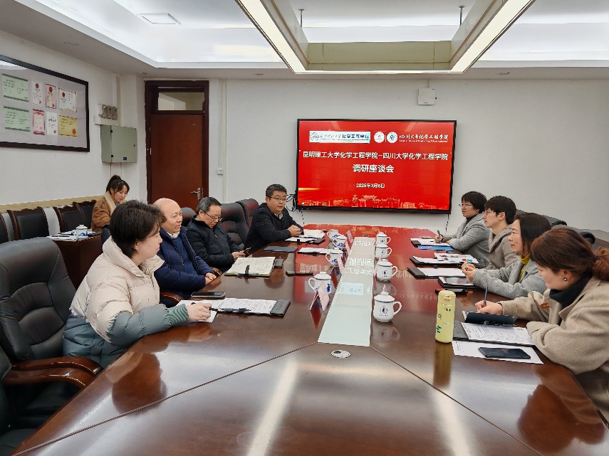 3月6日,昆明理工大学化学工程学院党委书记李云燕、副书记宁玲、副院长朱远蹠、辅导员常静华一行四人来院开展座谈交流。学院党委书记李天友、副院长唐盛伟、副书记姜利寒、副书记兼纪委书记李德富和院党政办主任高敏参与座谈。