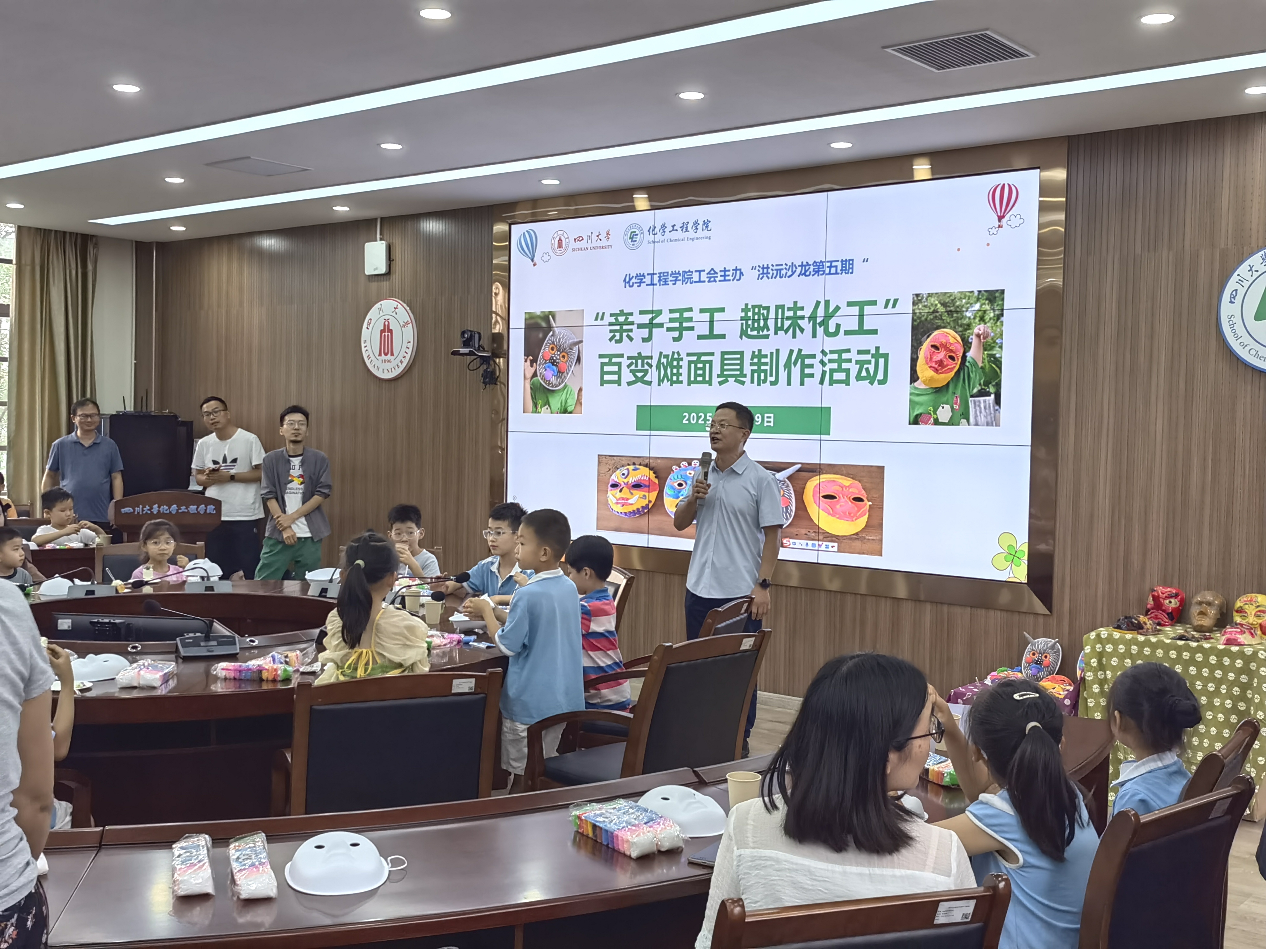 2025年5月29日下午,洪沅沙龙第五期"亲子手工 趣味化工"百变傩面具制作活动在学院望江校区化工学院312会议室欢乐举行。来自学院40余个家庭的50余名小朋友在家长陪同下参加了这场别开生面的“六一”主题活动。