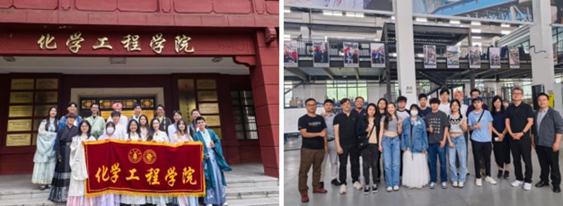 香港中文大学师生参加了由化学工程学院制药工程协会举办的“古代颜芳,今世名妆”传统文化体验活动。同学们身着汉服,共同完成了胭脂的制作,不仅体验了中国传统文化,也增进了中大学子与川大学子之间的感情。此外,香港中文大学师生参观了四川大学卓越工程师训练中心。同学们在卓工中心王袁隆老师的带领下进入到卓工中心,同学们就被高大的车间和整齐排列的“大”设备所震惊,这些都是他们平时在实验室没办法接触到的仪器设备。参观当天刚好遇到化学工程与工艺专业的本科生开展乙醇溶液的精馏实验,香港中文大学的师生与川大学子就实验进行了深入交流,体会到了化学与化工的不同,感受到了化工的神奇之处。此外,同学们也参观了四川大学互联化工研究中心,听老师讲解了化工+AI的故事,感受智能制造和万物互联的强大生产力。