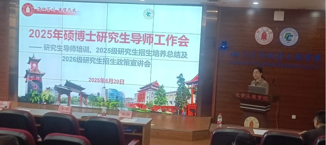 2025年6月20日下午,化学工程学院在望江校区化工楼313会议室组织召开2025年硕博士研究生导师工作会。本次会议邀请研究生培养教育办公室副主任朱敏、原研究生招生办公室主任刘猛、研究生招生办公室李洁和心理健康中心讲师罗晓博士参会并作专题培训。学院党委书记李天友,副院长谢锐,全体硕博导师等70余人参加会议。会议由学院院长助理欧阳李科主持。