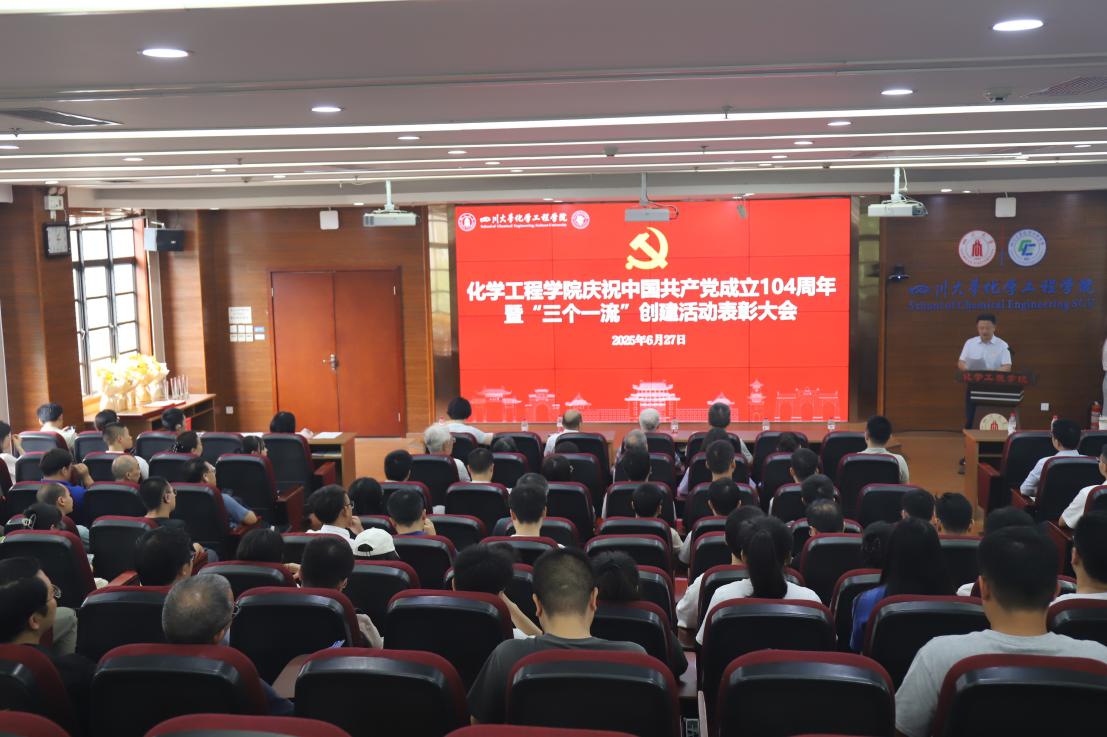 2025年6月27日下午,四川大学化学工程学院庆祝中国共产党成立104周年暨“三个一流”创建活动表彰大会于望江校区正行楼313报告厅隆重举行。学院班子成员、工会主席、专职组织员及教职工党员、离退休和学生党员代表等160余人参加此次表彰会。党委委员、工会主席穆畅道主持大会。
