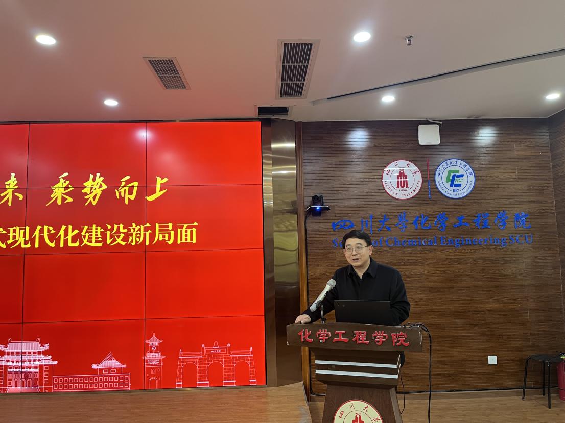 12月26日,化学工程学院召开党的二十届四中全会精神专家宣讲会,特别邀请学校党委宣传部常务副部长、校“学习贯彻党的二十届四中全会精神宣讲团”成员李栓久教授来院宣讲。学院领导班子、专职组织员、工会主席、和全体教职工参会,学院党委书记李天友主持宣讲会。