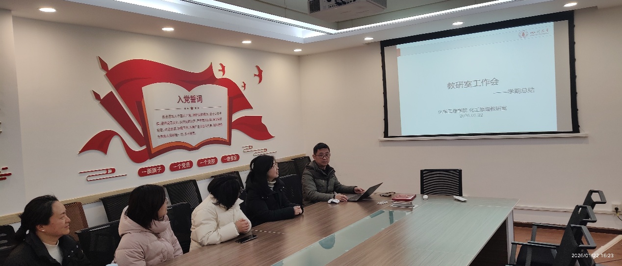 2026年1月22日下午,四川大学化工原理教研室在学院227会议室召开学期教学总结研讨会。会议由余徽老师主持,与会教师围绕课程建设与教学质量展开深入交流。