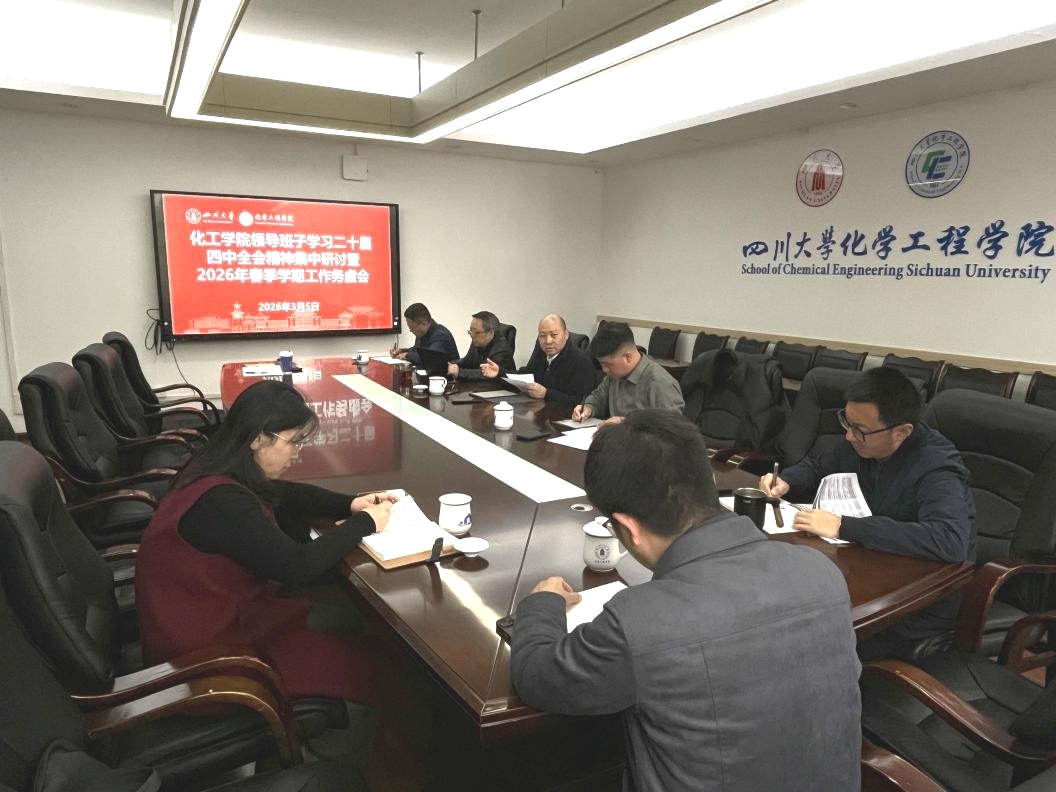 3月5日上午,化学工程学院召开领导班子学习党的二十届四中全会精神集中研讨暨2026年春季学期工作务虚会,学习学校有关会议精神,研究学院2026年重点工作。学院全体领导班子成员、工会主席参加会议。会议由学院党委书记李天友主持。