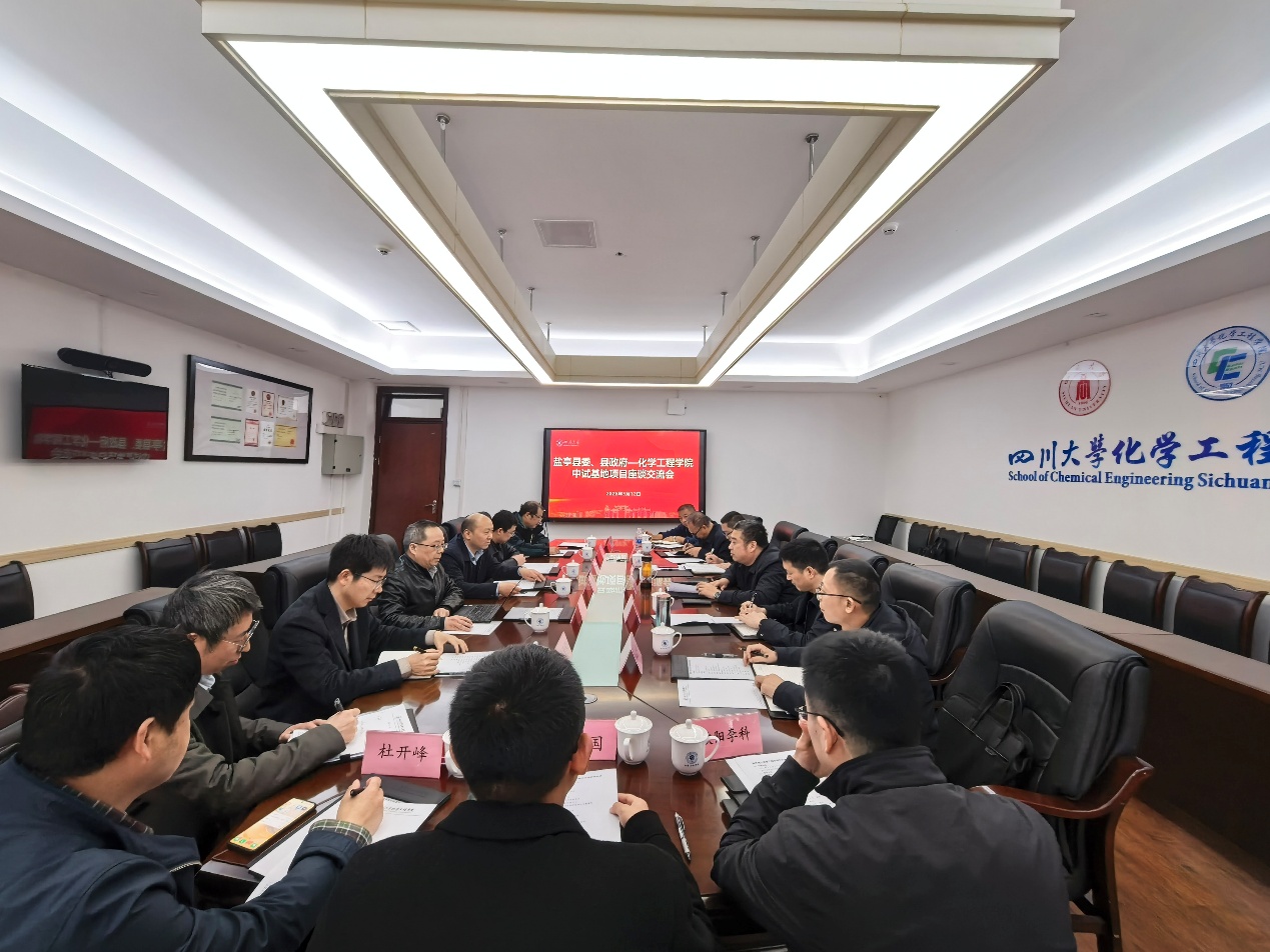 2026年3月12日,盐亭县县委、县政府一行赴四川大学化工学院就化工中试基地建设事宜举行交流座谈会。双方围绕中试基地的规划建设、人才培养、项目落地及运营管理等关键议题展开深入研讨,为深化校地合作、推动区域产业高质量发展奠定了坚实基础。
