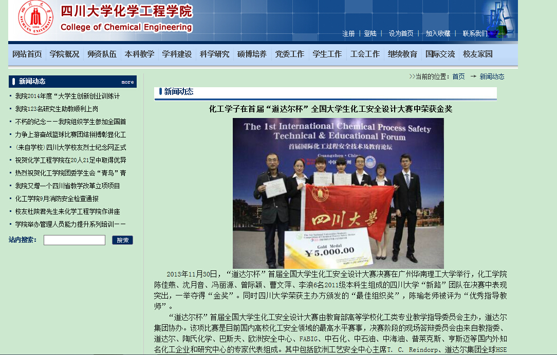 3.校内校外同步开赛,持续多年屡创佳绩。以化工设计协会为代表的一批优秀学术型社团利用多年积累的大赛参与、组织经验,在全校范围内开展了“化工人”四川大学化工设计大赛,实现了“大赛带小赛,小赛促大赛”的新局面。众多参赛选手在校赛的“热身”后均在国赛中取得了喜人成绩。据统计,每年大赛惠及群体近百余人,大赛相关活动覆盖范围近千余人,在学院乃至全校范围传递着了“化工人”越战越勇的竞赛精神。