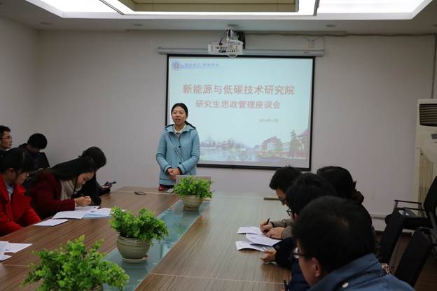 上午九点,新能源与低碳技术研究院的全体研究生在司振兵老师的带领下来到227会议室,会议开始前,每位同学填写信息汇总表和提交个人基本信息登记表。接着祁妙怡老师向各位同学介绍即将入职低碳院管理岗位的向冬梅老师,向老师入职后主要负责管理管理新能源与低碳技术研究院的硕博研究生。随后司老师围绕研究生的思想动态及同学们普遍关心的问题展开讲话,司老师强调:研究生请假、销假、离校、返校均要严格按照学校及化工学院的规章制度执行;同时还强调了实验室安全与寝室安全问题;而关于党建、学风建设、评奖评优以及困难帮扶等大家比较关心的问题司老师也做了相关说明。