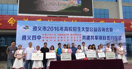 同时,在遵义市第四中学,举行了“四川大学-遵义市第四中学优质生源基地授牌仪式”。据悉,四川大学在2016年在贵州省招收文理生共355人,较2015年在黔招生计划上涨10.6%。