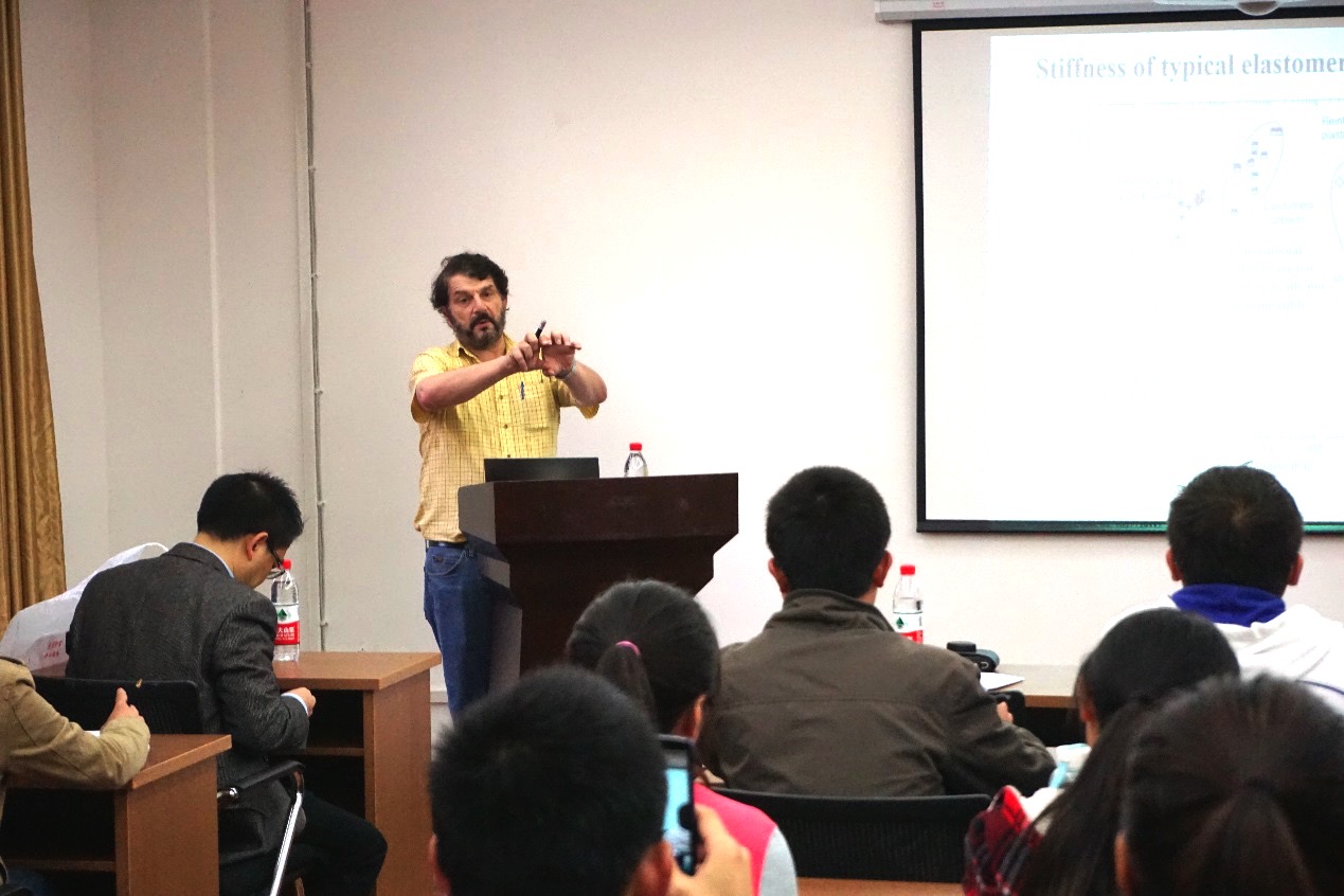 2015年11月23日上午10:00,美国科学院院士,美国科学与艺术学院院士,美国哈佛大学教授David A. Weitz 为我校老师和学生带来了一场以“New Routes to Microgel Fabrication” 的学术讲座。化工学院院长褚良银教授主持了此次学术报告。褚良银院长首先对David A. Weitz 做了简要介绍。Weitz教授对四川大学化工学院的邀请,以及各位老师和同学们的出席表示感谢,他简要介绍了他们课题组及其成员的研究工作,然后从”new soft elastomer materials”, ”new materials formulation”以及”asymmetric vesicles”等三个方面介绍了在软材料科学领域内的最新研究成果。报告结束后,David 鼓励大家积极提问,并对每一位听者的问题进行细致的解答。最后,大家带着问题和思考,用掌声感谢David的演讲,报告在轻松活跃的气氛中结束。