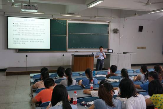 7月7日下午,我校江安校区综合楼C406教室,中国科学院大连化学物理研究所赵宗保研究员正在讲授《合成微生物学技术》,来自化工学院制药工程与生物工程专业140余名本科生选修了这门“实践及国际课程周”新开设的课程。第一次课开场,赵老师就用风趣的语言跟同学们说,这是一门挑战上帝的课程,因为合成(微)生物学技术将使生命科学工程化,并用于改造生命甚至创造新生命。赵老师用通俗的语言介绍了相关学科进展、合成生物学基本概念、合成生物学的重要性和一些应用范例。并以青蒿素的中间体青蒿酸的生物制造为例,讲解了如何通过合成生物学技术,在微生物细胞内过量产生紫穗槐二烯和青蒿酸等产物。