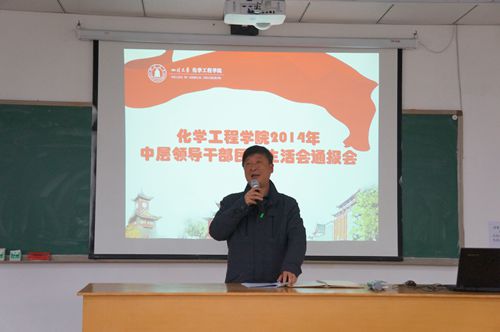 3月6日下午,化学工程学院2014年度院领导班子民主生活会通报会在望江校区正行楼(原西二教)313教室举行。学院全体领导班子成员、学院工会主席、学院全体科级干部、党支部书记、党员代表、校(院)两级党代会教职工代表、校(院)两级“双代会”代表、校(院)两级的各级人大代表、离退休代表、教职工代表和学生代表参加了此次通报会。院长褚良银教授主持会议。