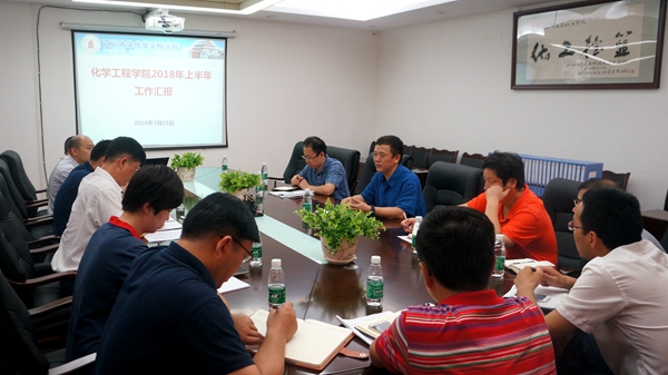学院党委书记庞国伟从1952年四川化学工业学院成立讲起,从学院基本情况、2018年上半年各项工作完成情况、本科教学评估预评估情况和问题整改以及2018年下半年学院工作要点等方面向张林副校长做了详细的工作汇报。庞书记说到,2018年上半年,学院在学校党政的领导下,深入学习贯彻习近平新时代中国特色社会主义思想和党的十九大精神,干在实处、走在前列,全面加快校院两级管理体制改革,各项工作取得了显著成效,党建及思想政治工作开创新局面,教育教学水平和人才培养质量再上新台阶,化工学子获得创新创业竞赛全国一等奖1项、银奖1项;研核心竞争力和学科建设取得新成绩,化学工程学科再次进入QS世界大学学科排名全球300强,并进入“软科世界一流学科排名”世界五十强;师资队伍建设取得新进展,钟本和教授团队入选首批“全国高校黄大年式教师团队”;社会服务能力和支持学校建设成绩喜人,77级、94级、04级等100余位校友开展值年返校活动;宣传及意识形态工作成效显著,推出“化工好故事”“科研扫描”“化工创新人才培养”等系列报道;为师生办实事效果明显,端午节慰问和五一慰问实现全覆盖,帮扶困难学生近500人次。