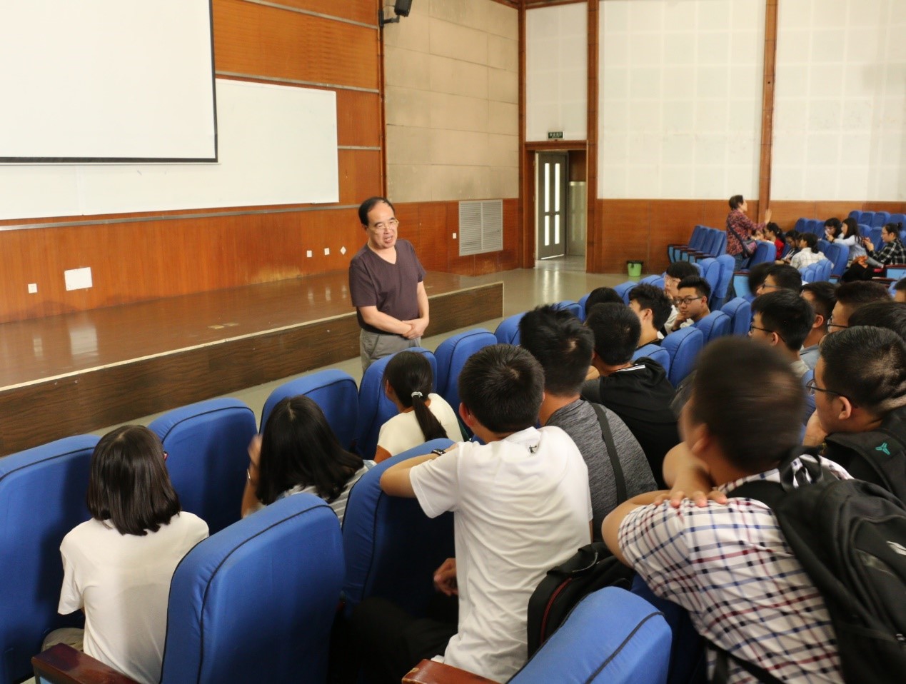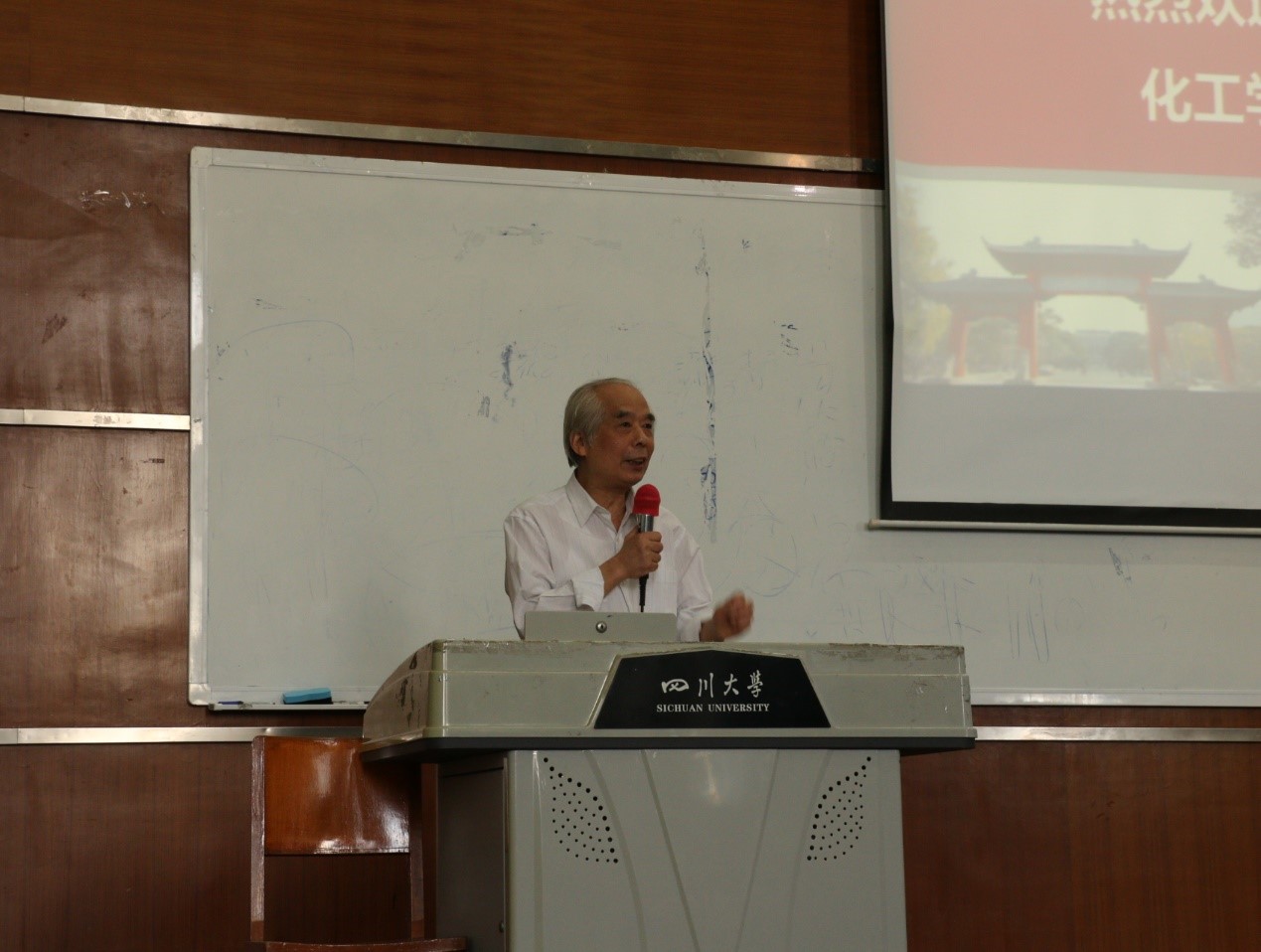首先曹养书、李存厚两位老师代表关工委老师发言。老教师们向同学们介绍了四川大学的小班化教学改革,指出这较以前的教学方式更加科学,使师生联系更紧密;同时还指出同学们要抓住国家和学校给予的良好学习机会,从大一起就要打好专业课基础,要养成良好的生活习惯,让优秀的同学变得更优秀。