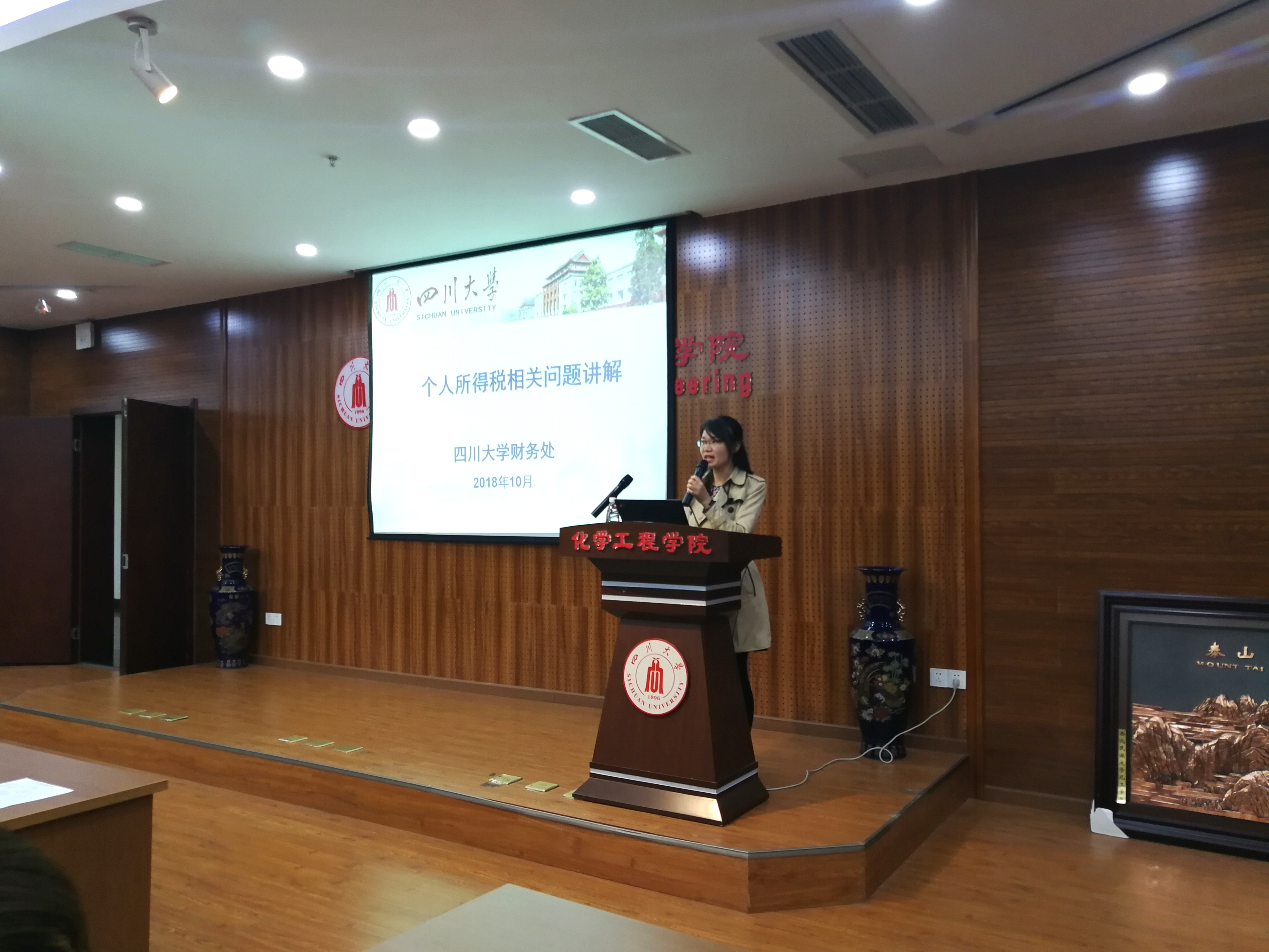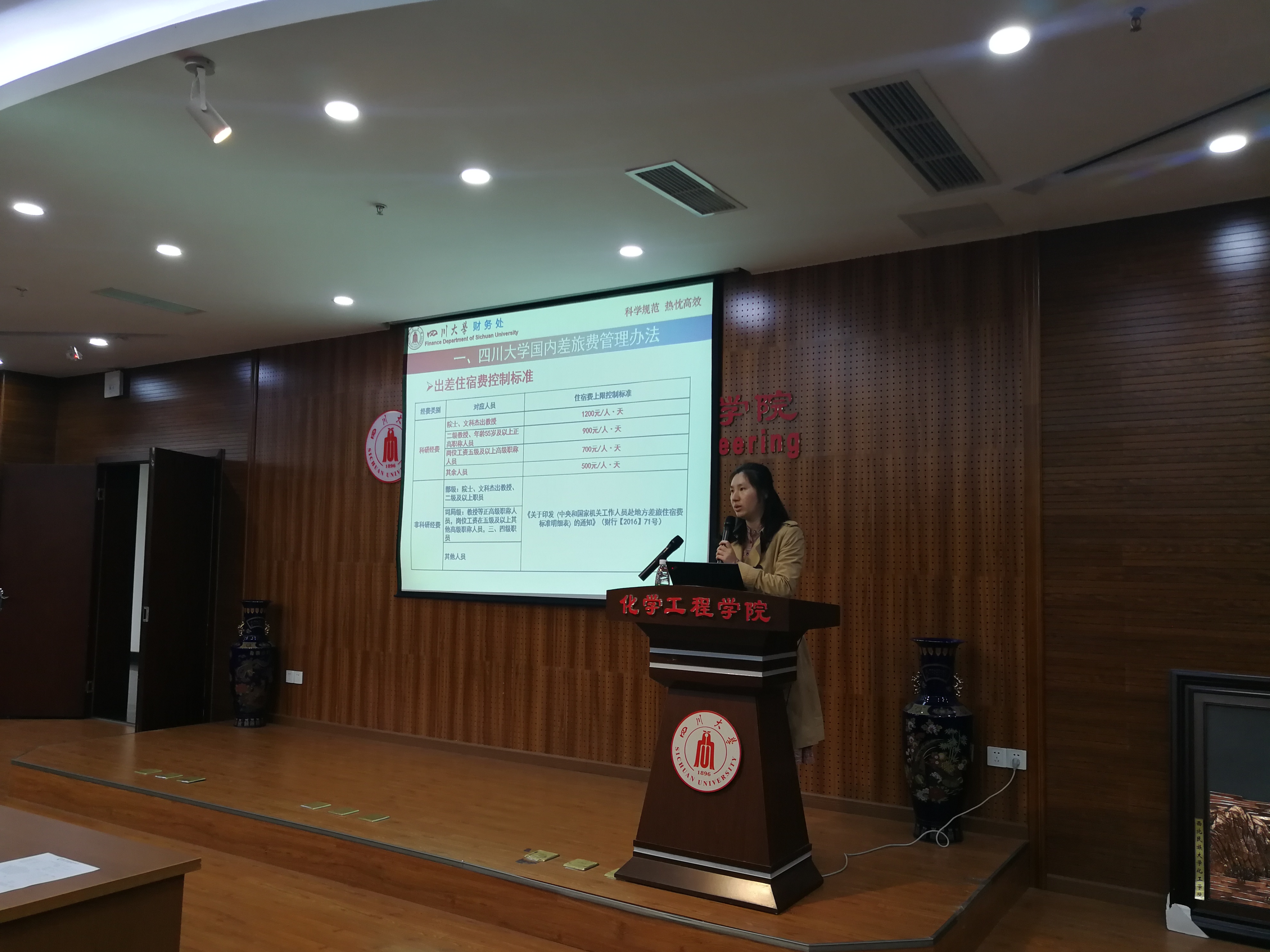 2018年10月12日下午,学校财务处财务政策宣讲会在望江校区化学工程学院313报告厅举行。会议由学院党委庞国伟书记主持,全院130余位老师参加了宣讲会。