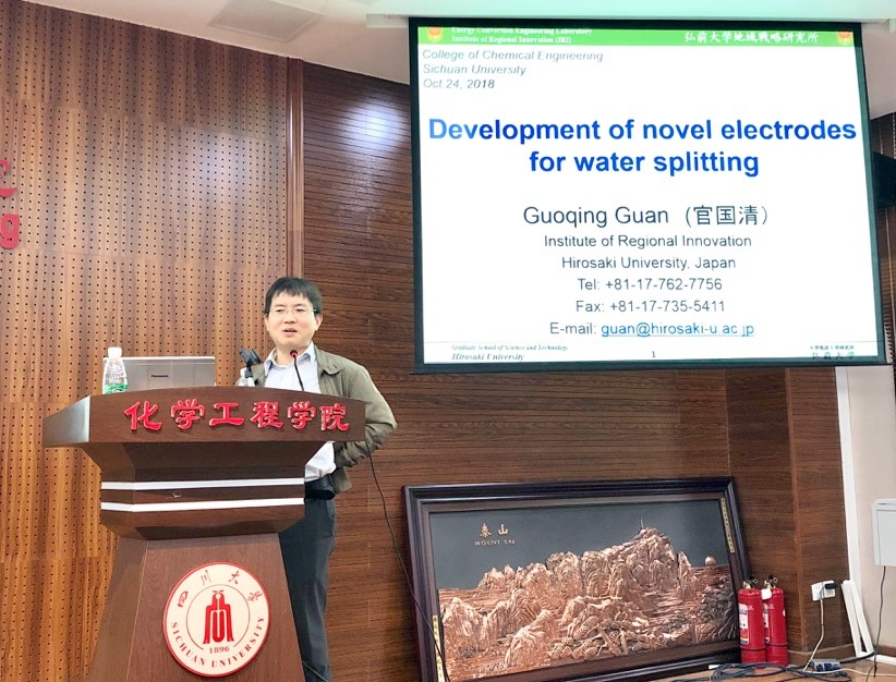 2018年10月24日下午,日本弘前大学官国清教授在四川大学望江校区化学工程学院313会议室给化工学院师生做了题为“Development of novel electrodes for water splitting”的学术报告。此次报告会由化工学院褚良银教授主持,化工学院部分教师、硕博研究生参加了此次学术报告。