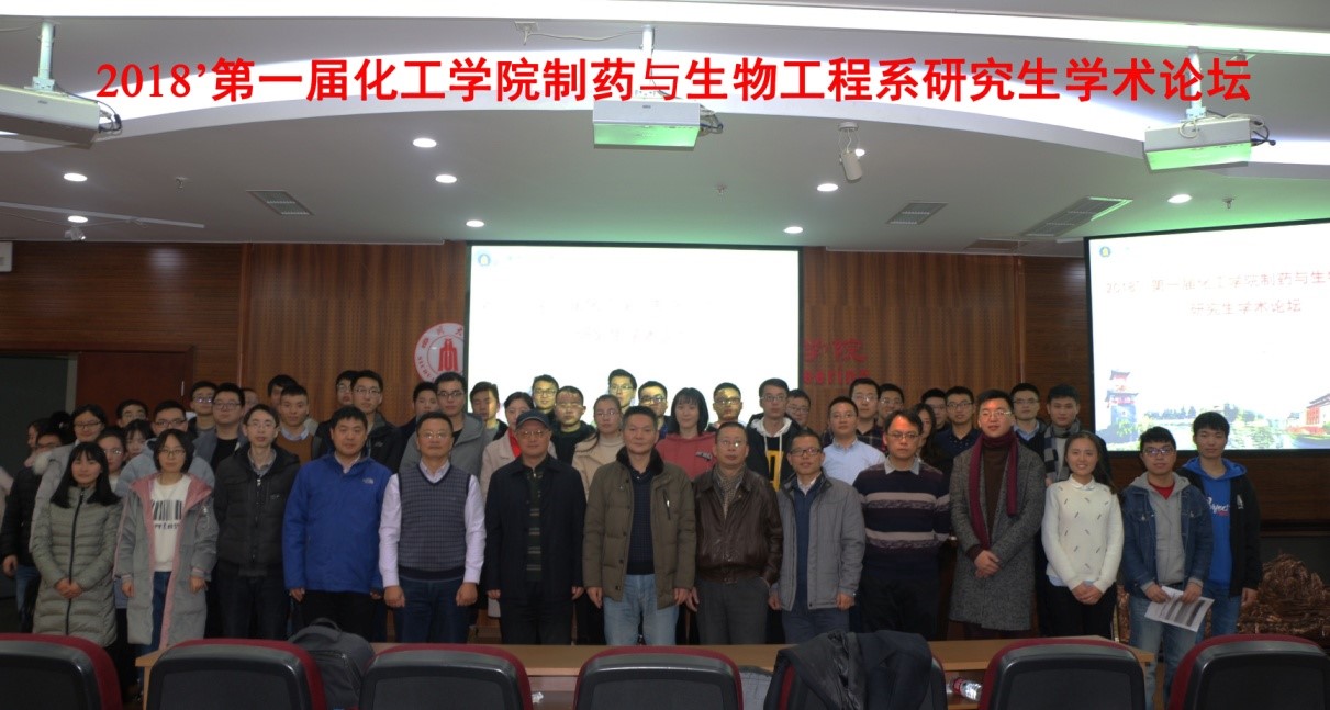 12月14日,由四川大学化学工程学院主办、化学工程学院制药与生物工程系承办的2018’第一届化学工程学院制药与生物工程研究生学术论坛在四川大学正行楼313报告厅顺利开幕。化工学院副院长唐盛伟教授、院长助理兼制药与生物工程系主任李德富副教授、本次论坛学术委员会主席宋航教授和张永奎教授、学术委员会委员穆畅道教授、赵刚教授、杜开峰教授、李延芳副教授、刘文彬副教授、杨坤副教授、黄文才副教授、王雅博副研究员、姚长洪副研究员、谢通慧老师以及制药与生物工程系全体研究生等100余位师生参加了此次论坛。