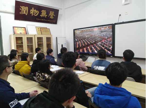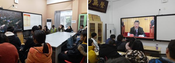 (化学工程学院师生在江安三舍党团活动室观看大会直播)