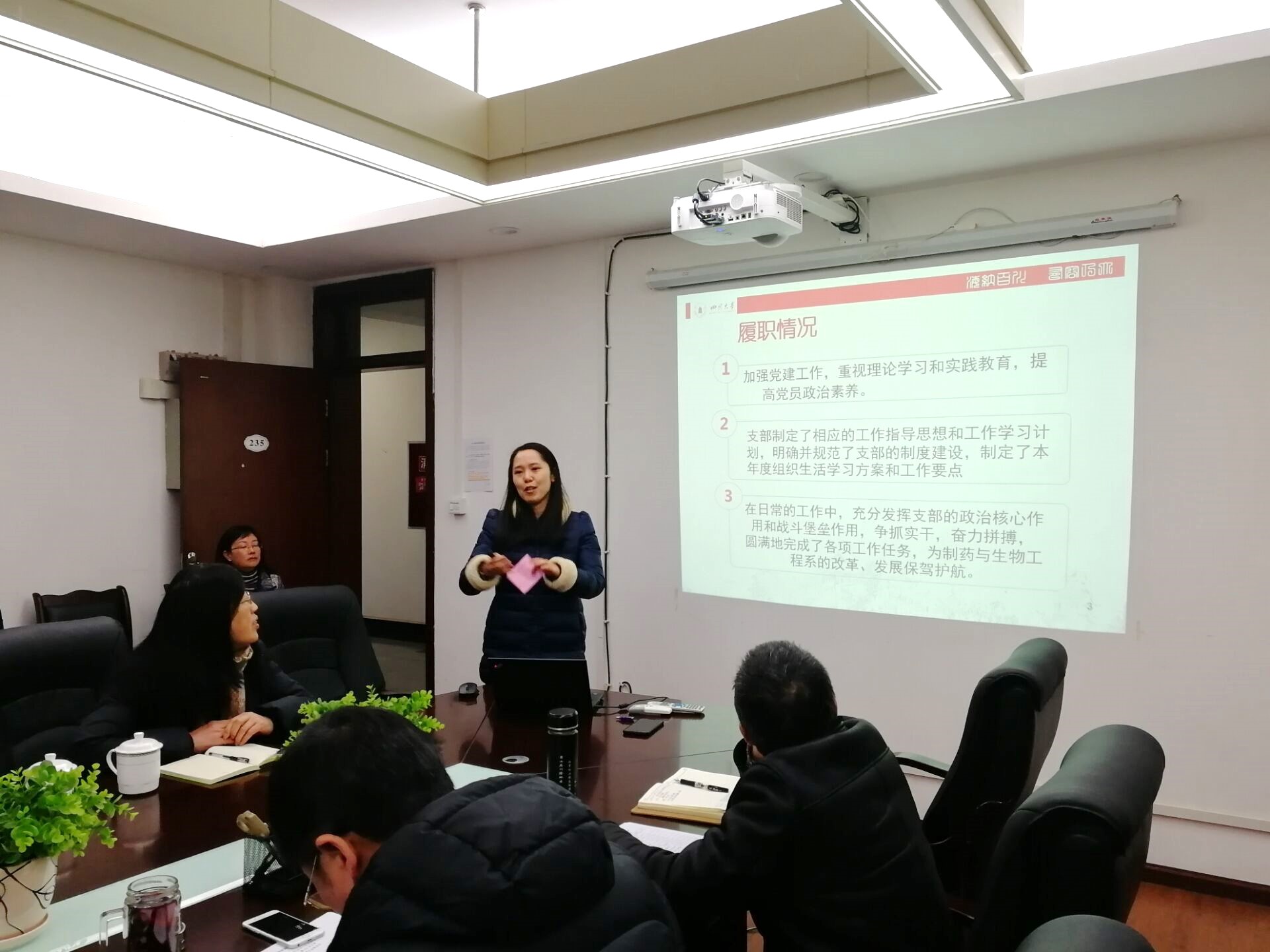 十名支部书记会议述职结束后,学院党委书记庞国伟进行总体点评和总结。他说到,本次现场述职各党支部准备充分,各党支部一年来认真贯彻落实四川大学决策部署和学院党委的重要决定,严格执行“三会一课”制度,党内政治生活执行好。在谈到特色和问题的时候,各党支部都能结合支部工作,对标党的最新要求,提出了切实可行的改进措施,总体上很好。随后,庞书记结合述职中发现的问题,对进一步加强和改进党支部建设、发挥好党支部战斗堡垒作用作了强调。