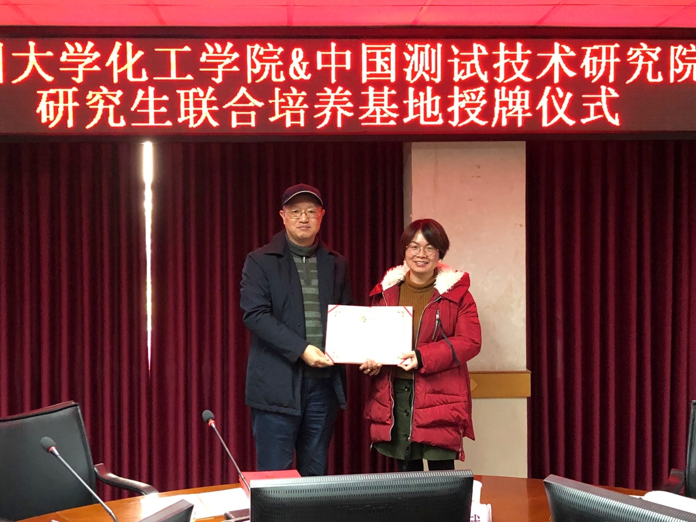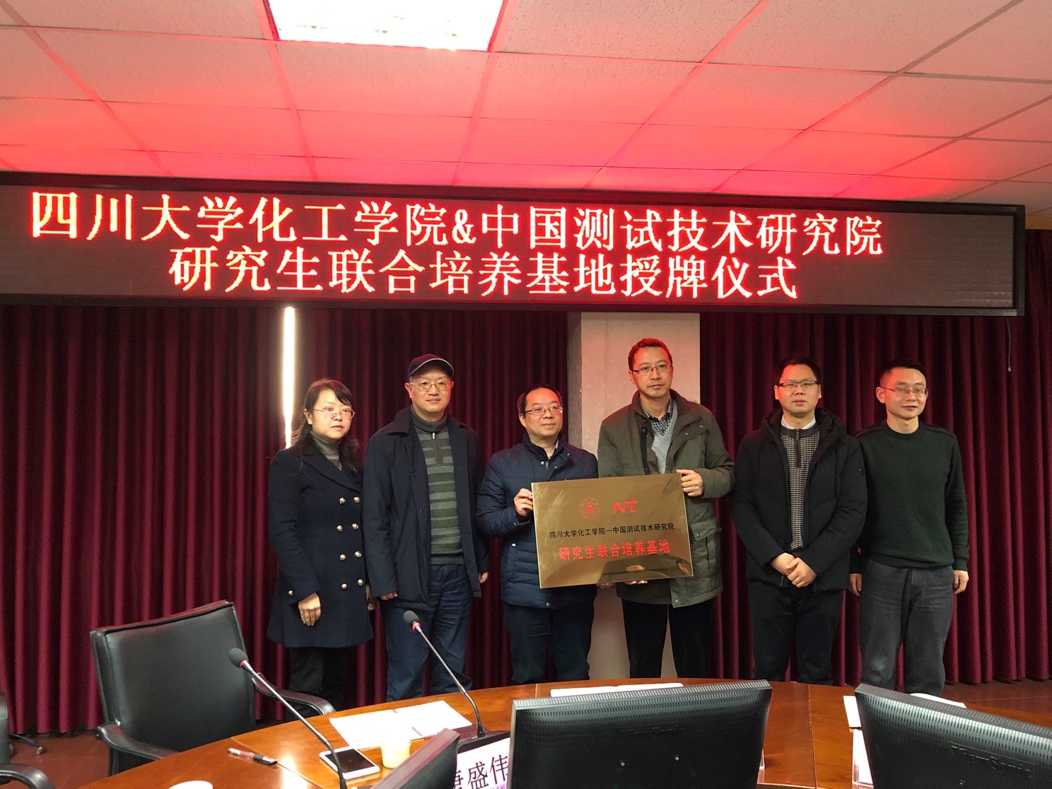 2019年1月11日上午,“四川大学-中国测试技术研究院研究生联合培养基地”揭牌仪式在中国测试技术研究院举行。中国测试技术研究院杨杰斌副院长、科研处孙登峰处长和生物所李怀平所长等专家,四川大学化学工程学院唐盛伟副院长、制药与生物工程系宋航等多位老师参加了此次揭牌仪式。