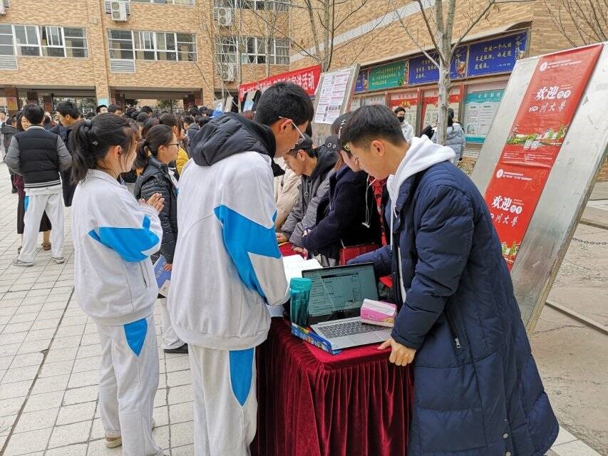 参与“学子母校行”的志愿者们前往各地高中发放招生宣传材料,通过举办宣讲会、设立咨询点等形式宣传我校的总体情况和招生政策,组织开展形式多样、内容丰富、主题鲜明的招生宣传活动。在南开中学中,志愿者们通过主题班会,将自制的视频展示给学校高三年级的学生,向同学们介绍学校办学状况与特色专业,以及各专业的就业情况。在绵阳市科学城第一中学,志愿者们利用自己准备的讲稿,将川大完善的育人体系与具有特色的人才培养方式介绍给高三年级学生,鼓励学弟学妹们报考川大,并表示以后随时为他们解答疑惑。据统计,各种宣讲会、班会、政策解答会共计20余场,参与高中生近500余人,目前还有部分团队正在活动进行中。